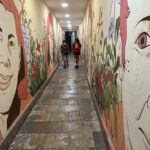 Los tonos blanco, rojo y verde conforman una paleta artística sobre la que se ha elaborado todo un homenaje a la figura de la mujer, a través de varias personalidades ilustres del mundo de la intelectualidad. Este pasaje, algo estrecho y alargado, goza de varios puntos de luz necesarios cuando llega el ocaso.
