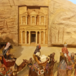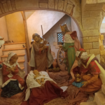 Empezando desde la izquierda, la primera obra, ‘La caravana’, está ambientada en el famoso desfiladero de Petra (Jordania). En esta imponente escena realizada vemos a los Reyes Magos viajando en dirección hacia Belén.