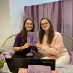 Lo que busqué, a la hora de escoger la paleta de colores -porque no deseábamos que el libro tuviera muchísimos-, fue seleccionar únicamente dos, ya que se habla del amor y desamor, visibles en el morado (amor) y el azul (desamor). Pensamos que el rosa era un poco… cursi.