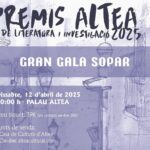 Los “Premis Altea de Literatura iInvestigació” calientan motores. El municipio se prepara para celebrar, el próximo sábado 12 de abril —como siempre, la víspera del Domingo de Ramos—, la tradicional cena de gala en la que se darán a conocer las autoras y los autores galardonados en las diferentes secciones objeto de concurso.