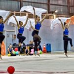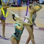 La gimnasia rítmica combina elementos de ballet, gimnasia y danza con aparatos como cuerda, aro, mazas…