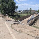 Uno de los puntos más afectados fue el puente de la N-III sobre el río, que cuenta con tres arcos y que quedó rápidamente obstruido por los materiales y vegetación arrastrados por el agua. Esta obstrucción provocó el desbordamiento del río, la inundación de campos cercanos y, finalmente, el colapso de la carretera en un tramo de aproximadamente un kilómetro de longitud, al saltar el agua por encima del firme.