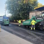 Ayer se iniciaban el riego de adherencia y hoy ha comenzado la ejecución de capa de aglomerado asfáltico de 5 cm de espesor con la que se mejorará sustancialmente la circulación por esta vía.