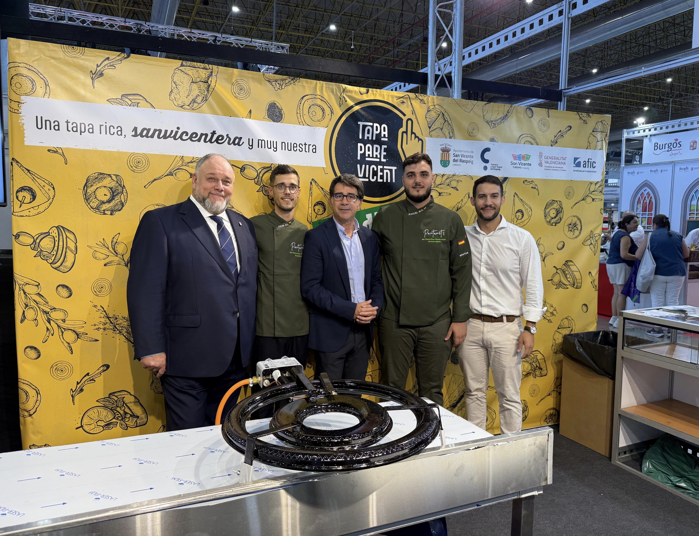 El Ayuntamiento de San Vicente del Raspeig estará presente por primera vez con un stand propio en la feria Alicante Gastronómica que se celebra desde hoy hasta el domingo en el recinto de la Institución Ferial Alicantina IFA. El alcalde, Pachi Pascual, y el concejal de Comercio y Hostelería, Vicente Pastor, han asistido a la inauguración de esta exposición internacional para recibir a los primeros visitantes del expositor del municipio.