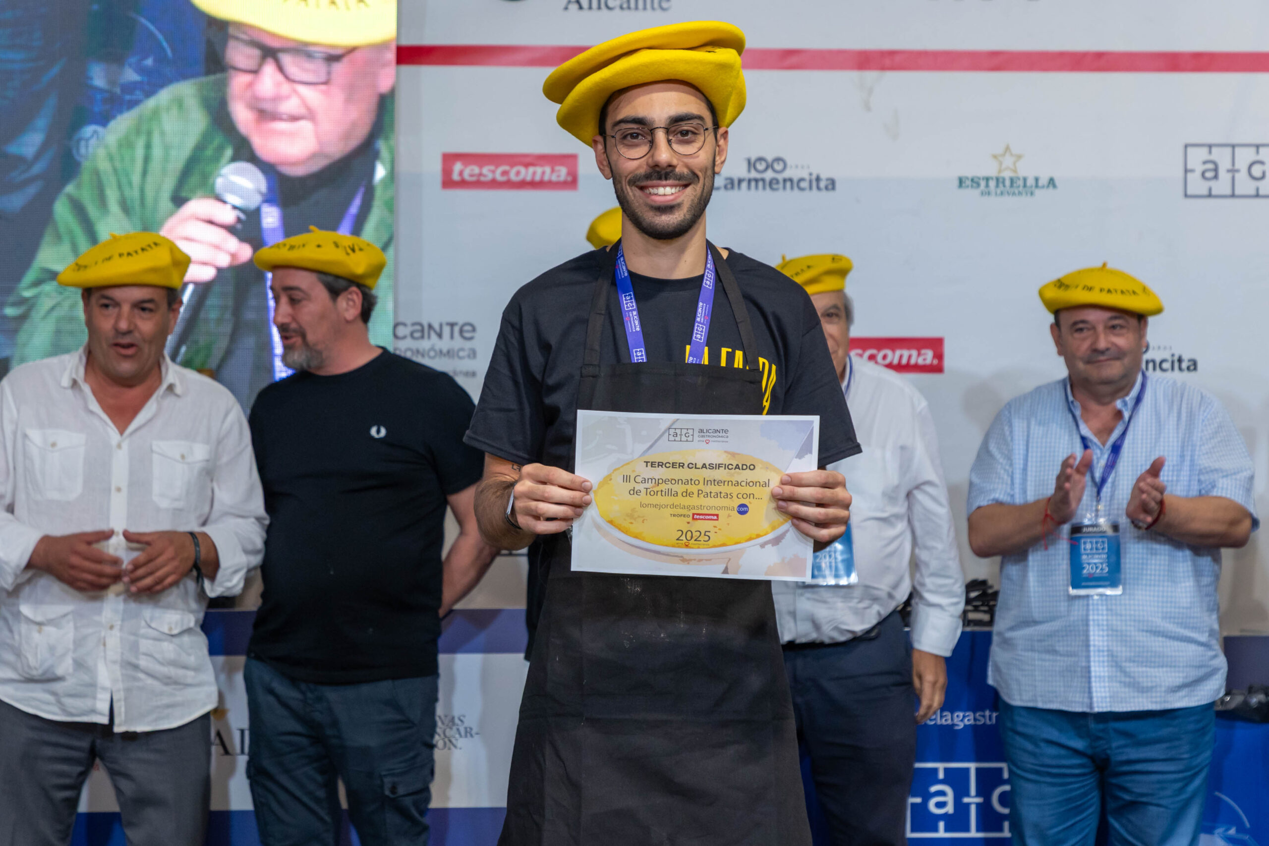 El segundo puesto ha sido para el Txintxirri (Bilbao) de Andoni Ibarguren que ha elaborado una tortilla con alegría riojana. El tercer clasificado ha sido Alejandro Oliveira de La Falda de Chamberí que ayer ganó el XVIII Campeonato de Tortilla de Patatas – Trofeo Tescoma. En esta ocasión ha presentado una tortilla de Betanzos con grelos y chorizo cebollero de Lalín.