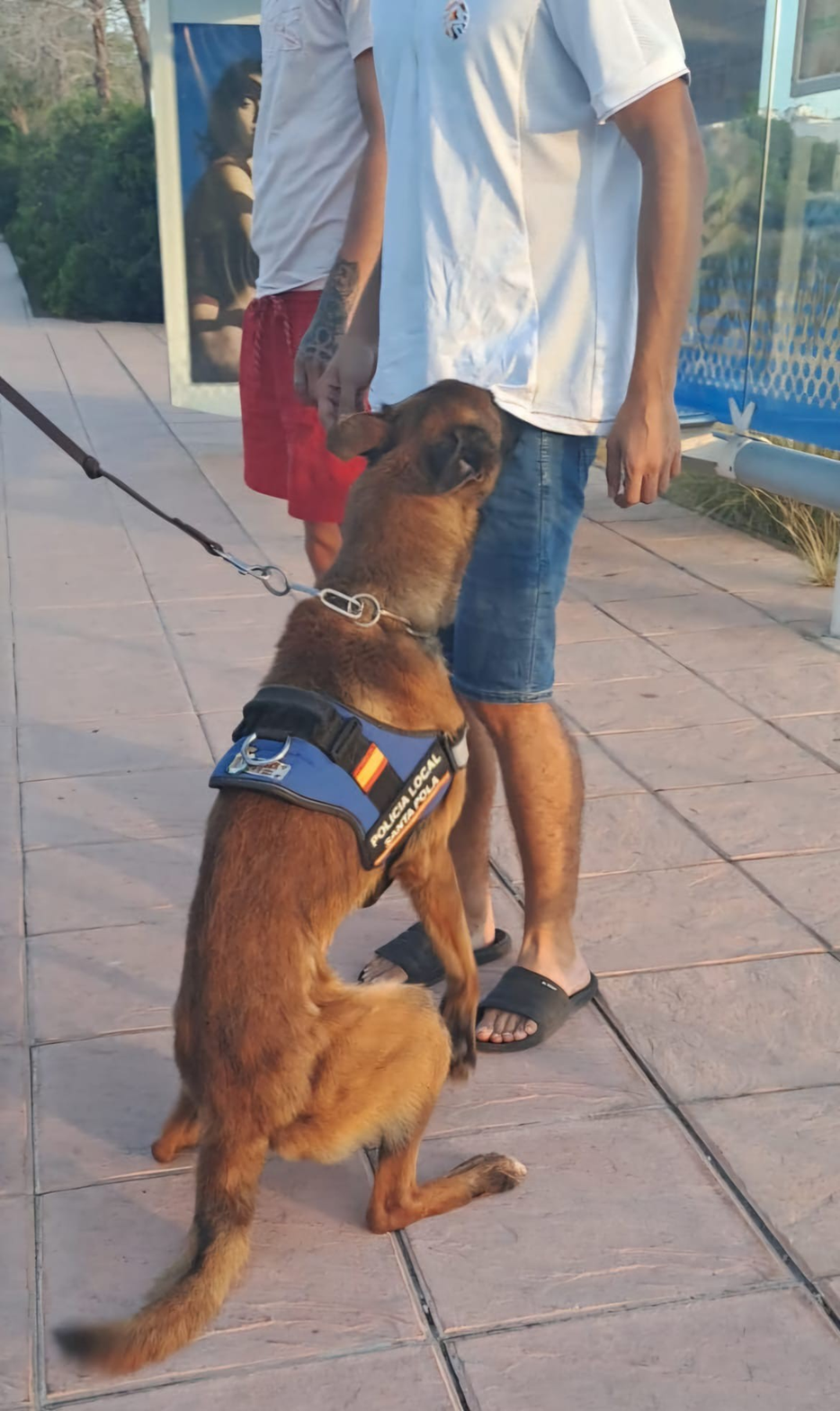 Actualmente la unidad canina de la Policía Local cuenta con dos pastores belgas llamados ‘Indio’ y ‘Nero’. El primero fue adoptado de una protectora, y el segundo fue cedido por la Plaza de Toros de Alicante. Los agentes a su cargo son Manuel Ibáñez y el citado Roberto Martínez.