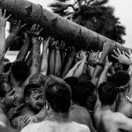 Claro, en estos eventos no tienes tiempo para preparar nada o para planificar. Tienes que ir detrás de la gente corriendo con tanto movimiento. Además, es casi una batalla de agua también, porque a medida que los portadores llevan el chopo entre esfuerzo y sudor, la gente va tirándole cubos de agua desde arriba y tú tienes que esquivarlos. A mí casi me golpea un globo de agua en la cámara.