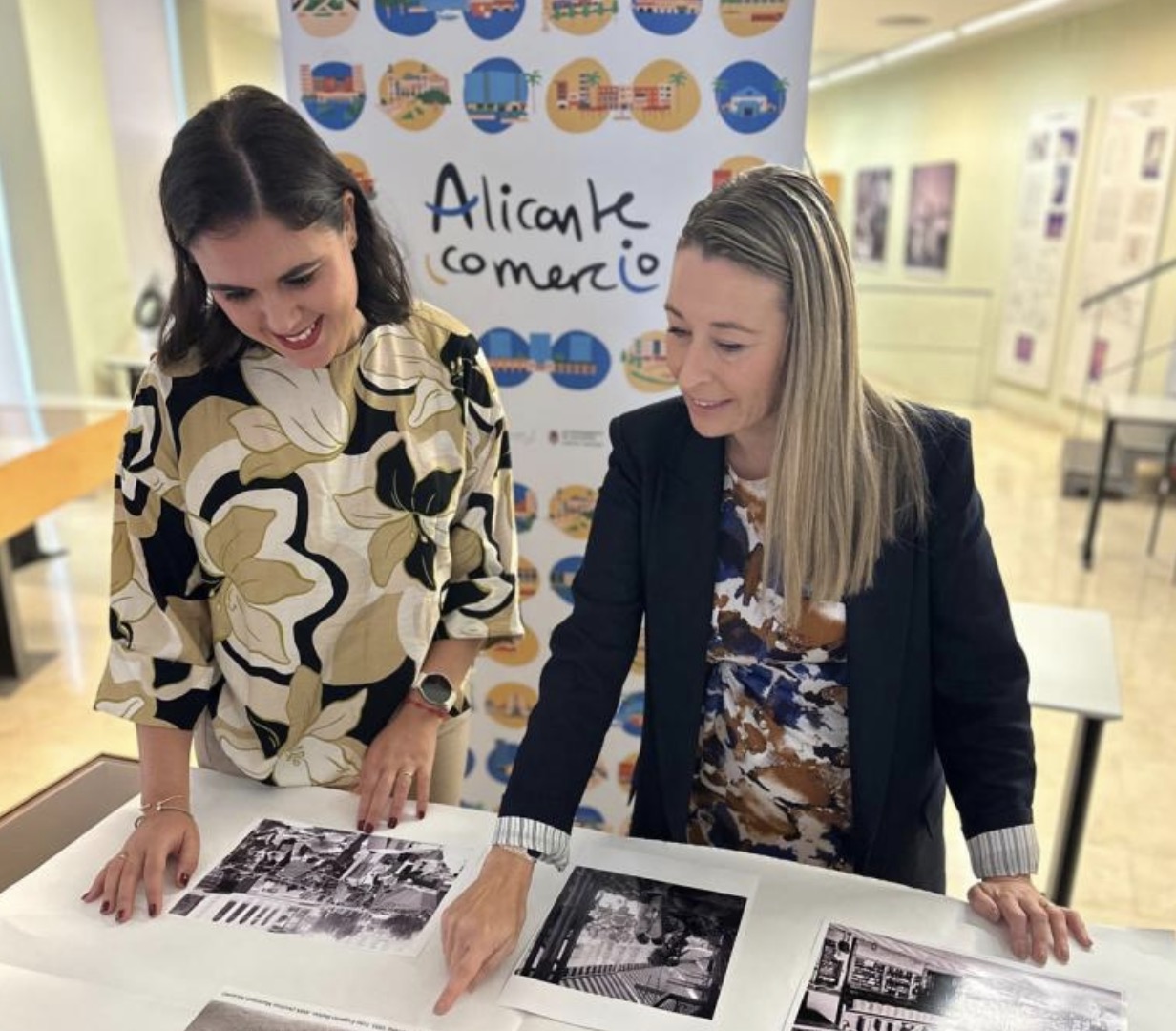 Las concejalas de Comercio y Cultura del Ayuntamiento de Alicante, Lidia López y Nayma Beldjilali, han presentado esta mañana la exposición fotográfica organizada para conmemorar el Día del Comercio Local, que va a tener lugar el próximo viernes 24 de octubre, en la plaza del Ayuntamiento, de 9 a 14,30 horas. La exposición reúne una muestra de un centenar de fotos retrospectiva de la evolución del comercio, mercados y mercadillos en el centro y los barrios que han sido cedidas por el Archivo Municipal y las diferentes asociaciones y entidades comerciales, y tiene como lema «Día del Comercio Local. Nuestro Comercio».