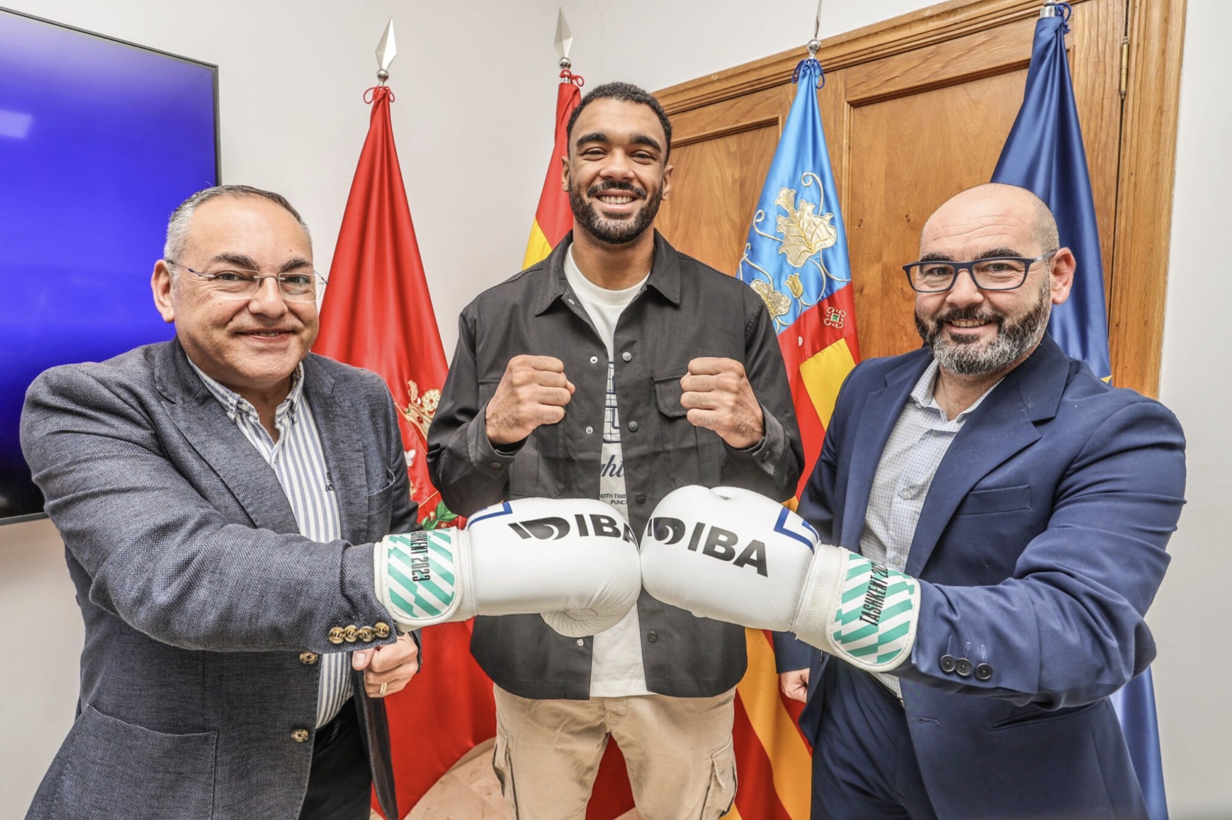 El Pabellón Florentino Ibáñez-Ciudad de Elda acogerá el próximo 21 de noviembre a partir de las 20:00 horas, una nueva edición de la Copa Presidente de boxeo, en la que participarán los mejores púgiles de España. El concejal de Deportes, Enrique Quílez, acompañado por el presidente de la Federación Española de Boxeo, Felipe Martínez, y del boxeador eldense Pablo Coy.