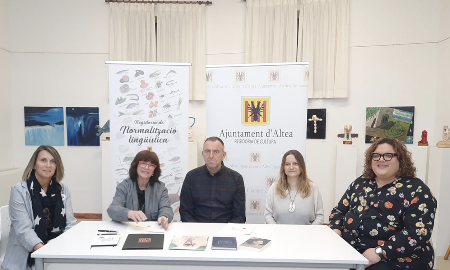 La Acadèmia Valenciana de la Llengua y el Ayuntamiento de Altea han firmado un convenio de colaboración para llevar a cabo conjuntamente actuaciones de promoción del valenciano en el municipio. El acto de la firma se ha celebrado en la Casa de la Cultura, con la participación de la presidenta de la Academia, Verònica Cantó; la académica M. Àngels Francés; el alcalde de Altea, Diego Zaragozí, y las ediles de Cultura, Pepa Victoria Pérez, y de Normalización Lingüística, Xelo González.