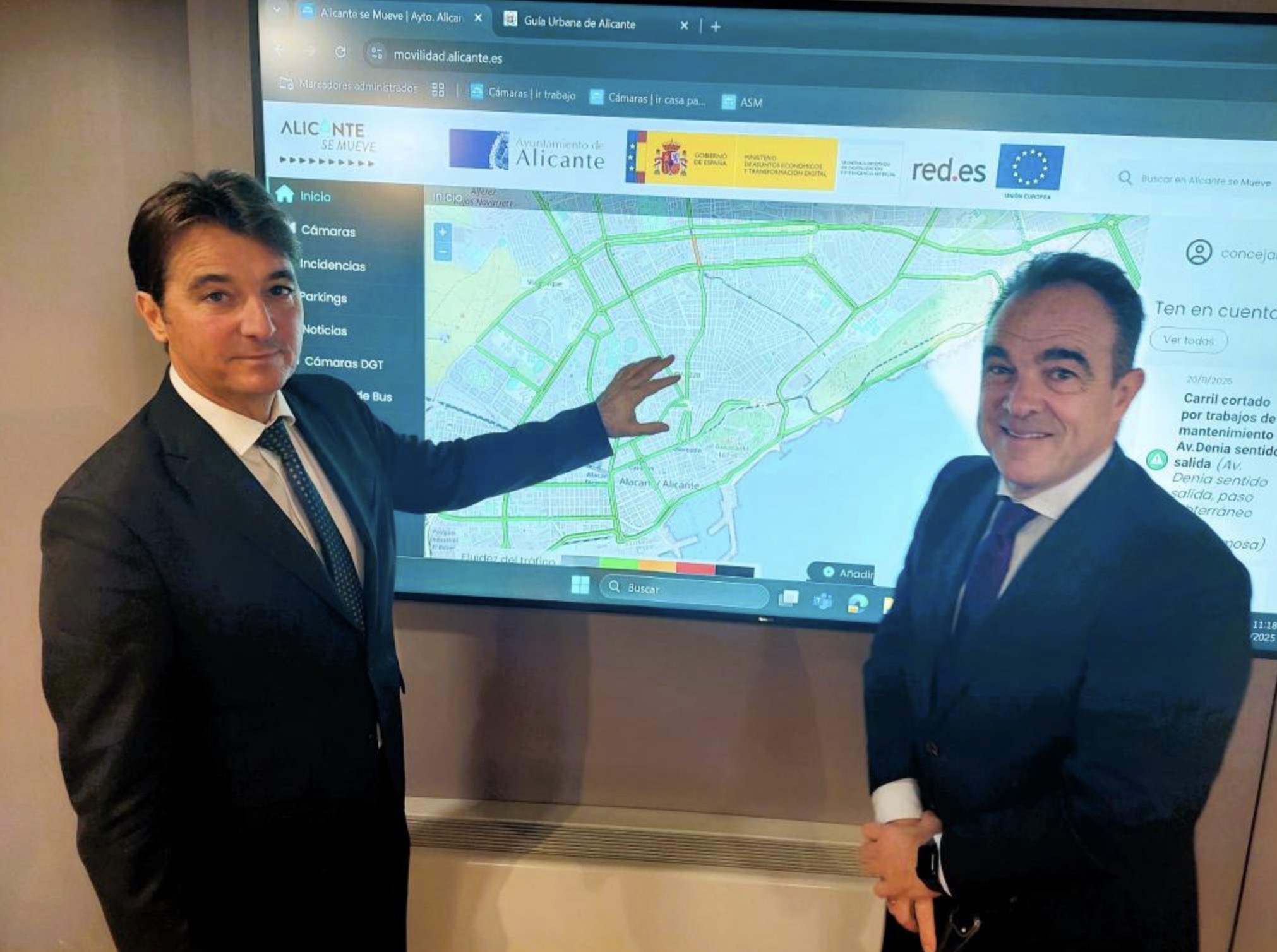 El Ayuntamiento de Alicante activa este viernes la plataforma digital ‘Alicante se mueve’ con una web https://movilidad.alicante.es y una aplicación interactiva para teléfonos móviles donde se puede acceder a información en tiempo real sobre la situación del tráfico -con imágenes fijas de las cámaras-, las plazas disponibles en los aparcamientos de concesión municipal, los tiempos de paso de los autobuses urbanos e interurbanos en las distintas paradas, así como las incidencias en la circulación y los eventos programados en la ciudad que afecten a la movilidad.