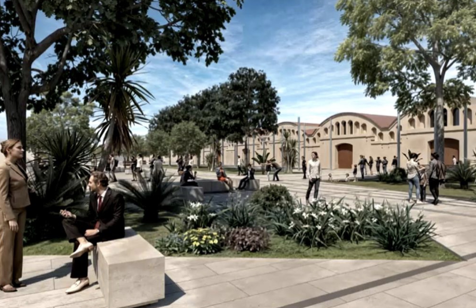 Asimismo, se proyecta un gran espacio de plaza frente a los tinglados, con una zona de sombra generada por una gran pérgola que la cubre y que conecta con el resto de los espacios peatonales. Las zonas de sombra acompañarán al peatón en todos los recorridos y espacios generados, ya sea mediante arbolado de gran porte o mediante pérgolas de menor envergadura junto a los tinglados en los meses estivales.