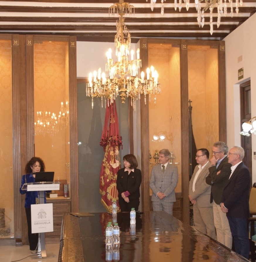 Fue un acto entrañable, celebrado en el Ayuntamiento de Orihuela. Además del propio alcalde, José Vegara Durá, acudió la rectora, el secretario general de la universidad, Pep Ochoa, y la vicerrectora de extensión universitaria, Catalina Iliescu.
