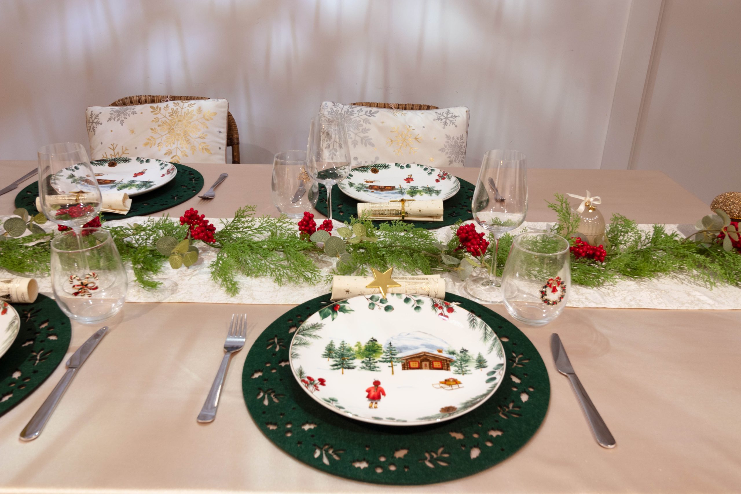 La decoración de la mesa es imprescindible en estas fechas. Debe tener un buen mantel sobre el que poner bonitos platos navideños junto a finas copas. También podemos decorarla con velas, guirnaldas, etc., pero siempre dejando espacio para que el comensal se sienta relajado y disfrute de la comida.