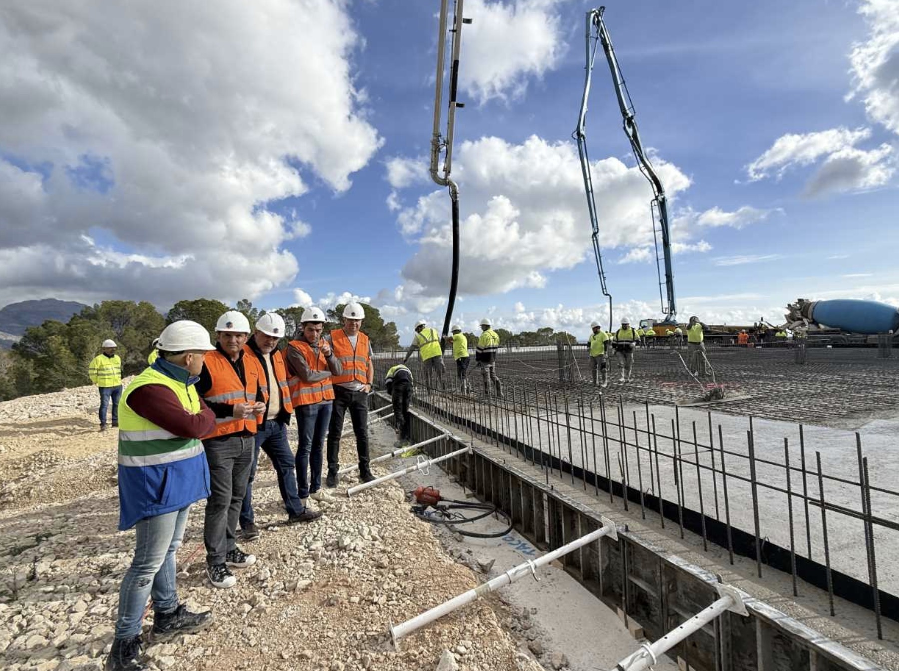 Estas obras además del nuevo depósito de agua potable incluyen la renovación de la red de tuberías de toma de captación de agua potable del Consorcio, tras pasar por la planta Potabilizadora de La Nucía. El pasado sábado en un solo día se realizó la “losa” de esta infraestructura hidráulica, obras que fueron visitadas por Bernabé Cano, alcalde de La Nucía y los concejales Sergio Villalba y Miguel Ángel Ivorra.El objeto de la construcción de este nuevo depósito es mejorar la red de abastecimiento de agua potable del municipio, ya que anterior depósito general de agua data de 1983, así como las tuberías de conexión. El objetivo final de este nuevo depósito es garantizar el correcto suministro de agua a la red actual y estar preparado para futuros crecimientos.
