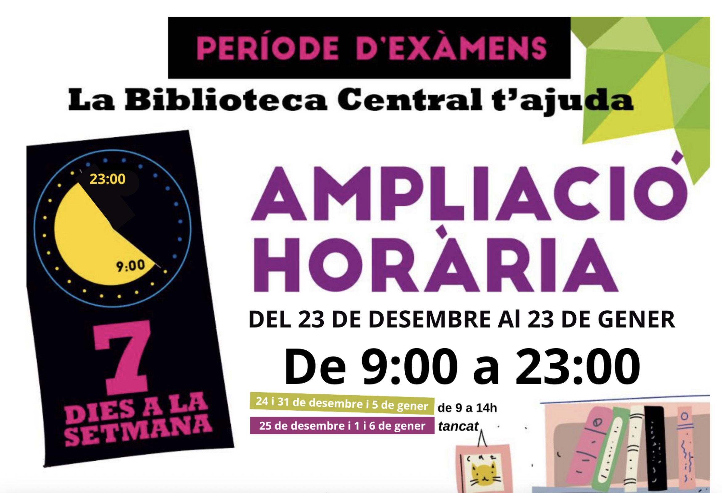 La ampliación responde a la necesidad de muchos estudiantes universitarios y opositores que se preparan para exámenes clave como son los de la Universidad de Valencia del 7 al 27 de enero, de la Universidad Politécnica de Valencia, Campus de Gandia, del 20 al 31 de enero, y el MIR, que se celebrará el 24 de enero.
