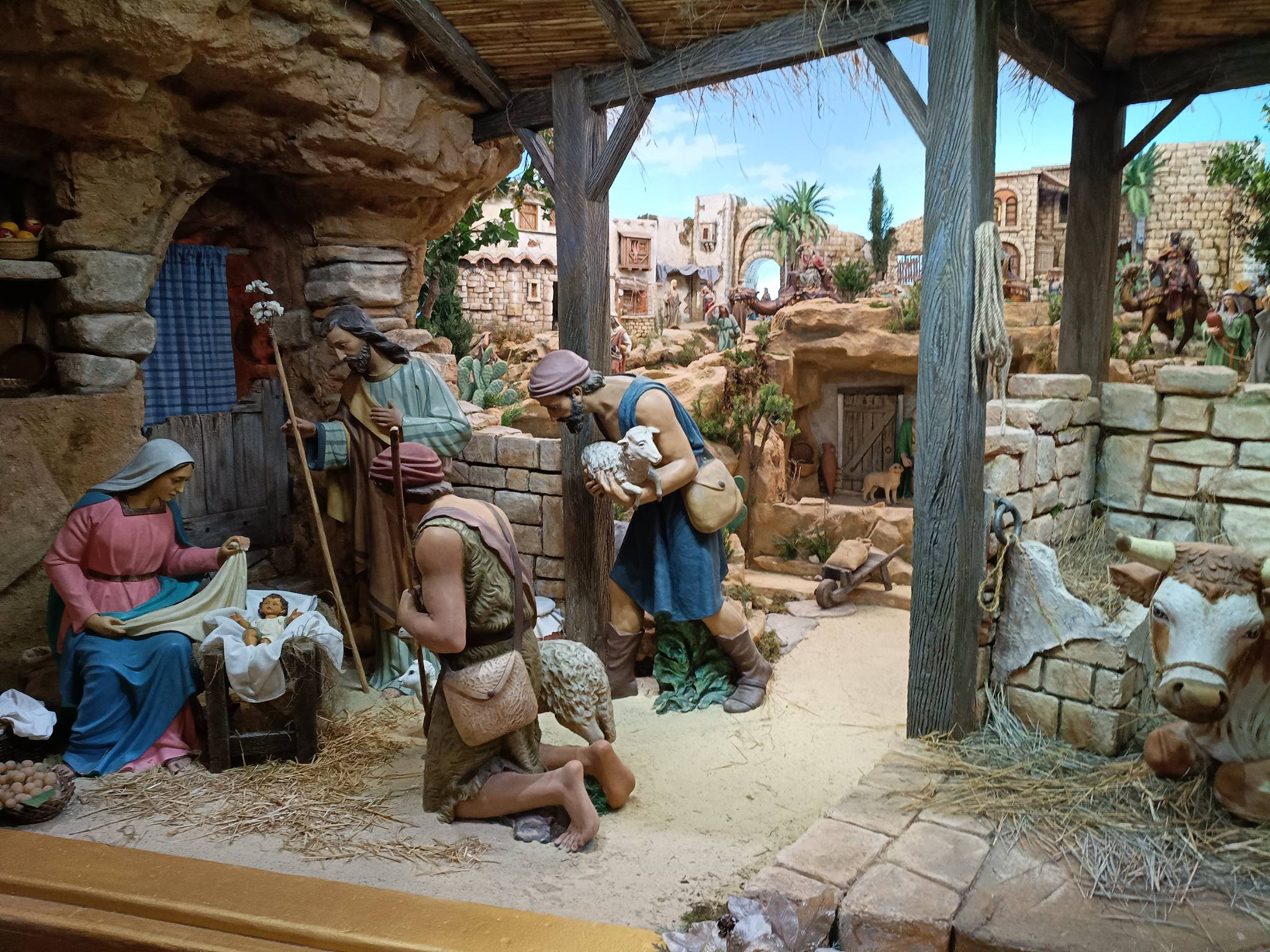 “En este caso se trata de un belén popular, que no trata de ajustarse técnicamente a lo escrito en la Biblia. Por eso vemos un templo cristiano en Belén, que realmente parece cualquier pueblo español”, nos apunta Cánovas.