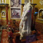 “Curiosamente la estatua de Hércules la encontramos al lado de un contenedor tirada por la calle. Los belenistas tenemos el arte de aprovechar cualquier cosa que encontramos. De hecho, el carbón de los pebeteros se ha realizado con trocitos de faros blancos, amarillos y rojos de los coches”, nos señala Cánovas entre risas.