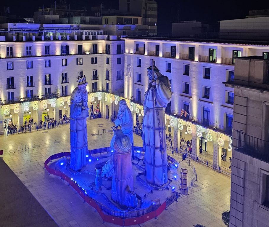 Y por supuesto no falta ese sello de artesanía alicantina tanto en el Belén Monumental como en los ángeles, la ruta de los belenes o las composiciones que hay en la puerta de la Concatedral de San Nicolás. También hemos redoblado la iluminación navideña.