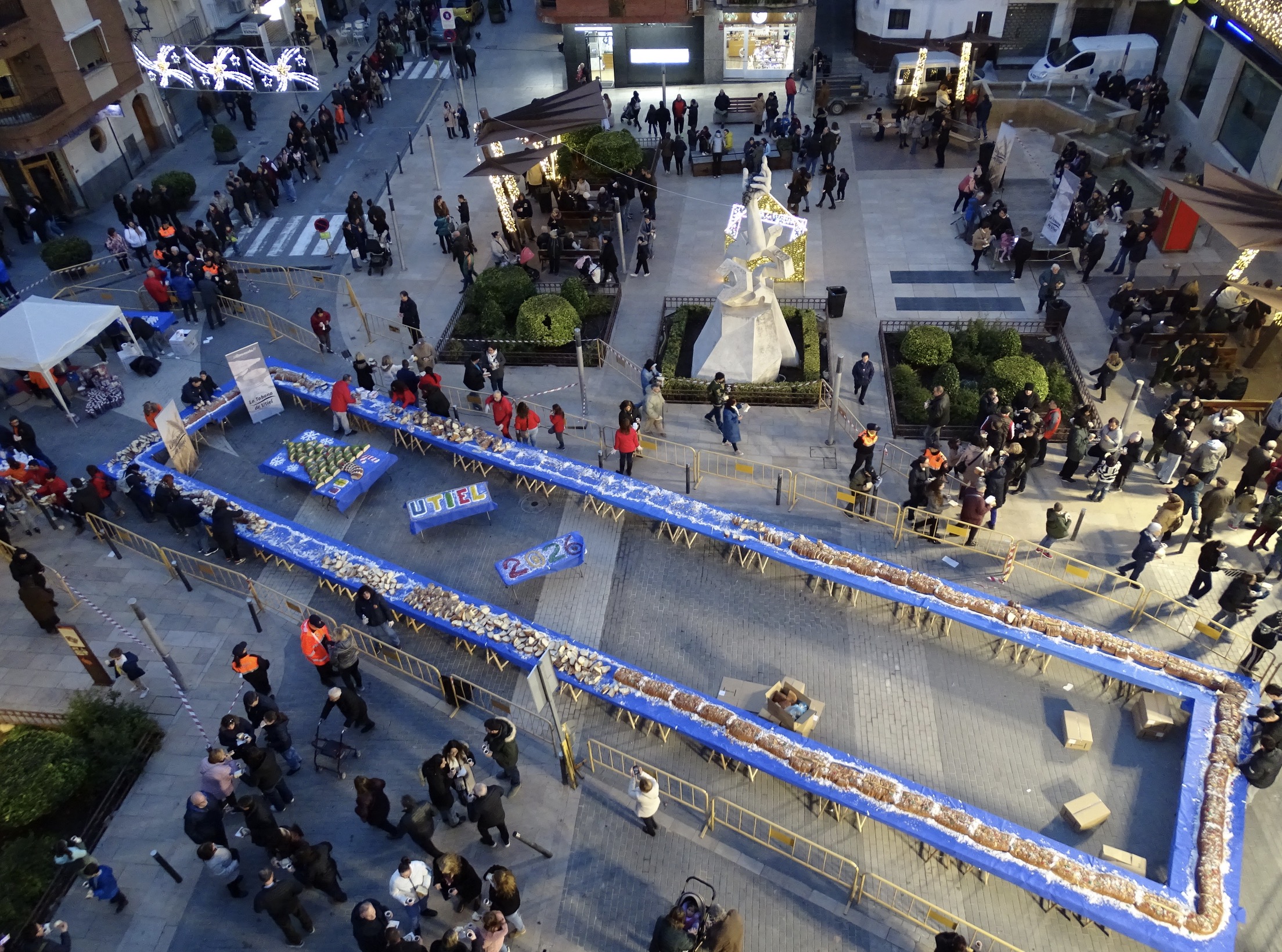 El tradicional Roscón de Reyes Gigante ha ocupado por completo la Plaza Puerta del Sol de Utiel con 60 metros de delicioso postre para endulzar esta tarde navideña.