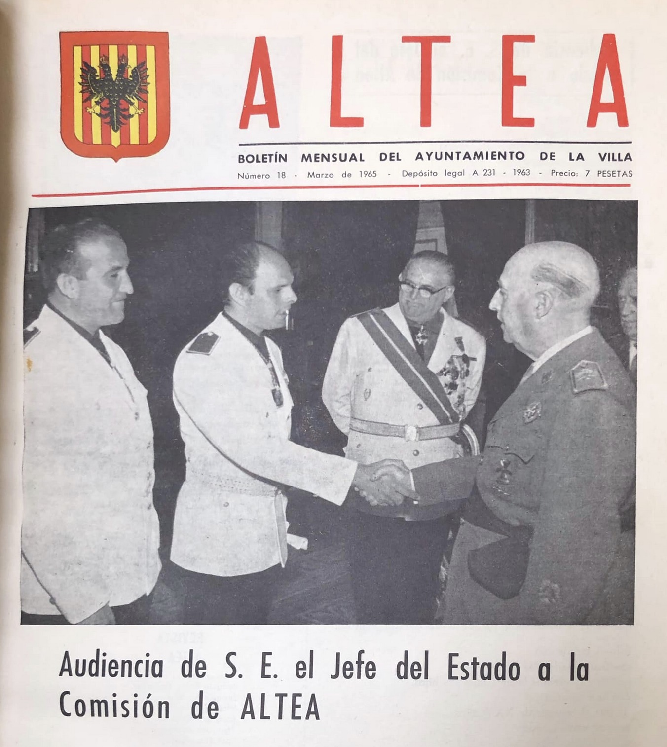 La Revista Altea, el boletín municipal de la época, reflejó textualmente la motivación de la distinción: “testimonio y gratitud por la Paz que ha sabido deparar a todos los españoles” y por los beneficios “morales y materiales” atribuidos al dictador. Una narrativa que encajaba con el mensaje oficial del franquismo, que presentaba una irreal imagen de prosperidad y orden mientras ocultaba la represión política y la falta de democracia.