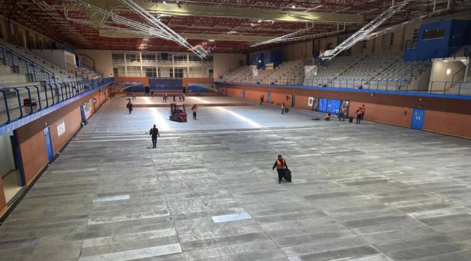 “Un equipo de unas 30 personas trabaja prácticamente las 24 horas para completar la fase de acondicionamiento de las instalaciones, en la que se ha prestado especial interés en la protección de las pistas polideportivas del pabellón central” ha explicado Carrobles, que también detallaba que se han colocado hasta tres materiales diferentes de protección sobre la tarima de las pistas deportivas. “Primero se ha colocado una superficie de bateco”, un revestimiento protector de pavimentos deportivos, y sobre el mismo “se han instalado 3.500 metros de contrachapado de madera”. A continuación, se han montado “suelos técnicos de última generación”.