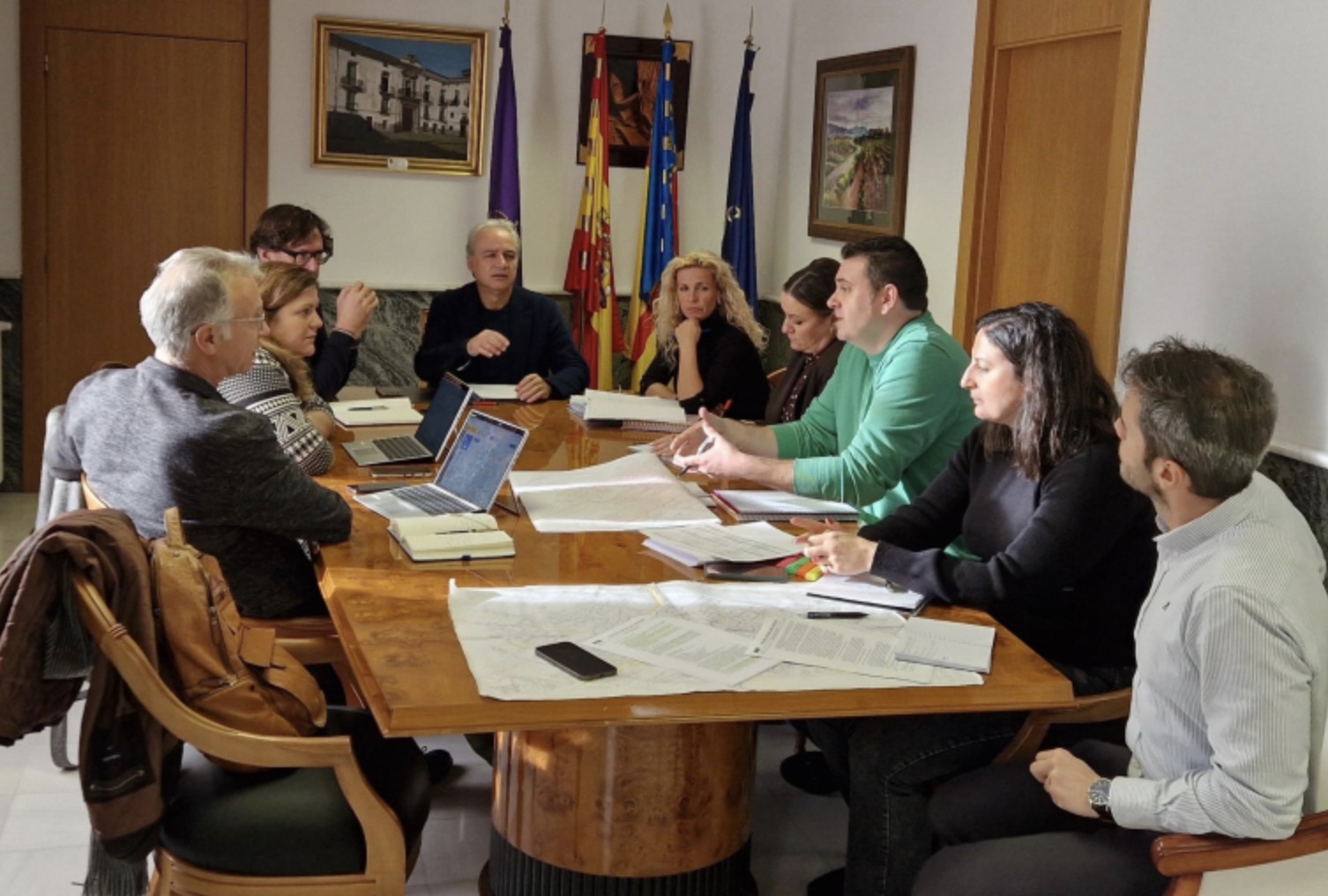 Ayer el alcalde de Utiel, Ricardo Gabaldón, junto con concejales y técnicos municipales, mantenían una reunión de trabajo con el director de la Oficina de Coordinación e Impulso del Comisionado de la DANA, Roger Llanes, y con la directora de relaciones institucionales del Comisionado para la Reconstrucción del Gobierno de España, Bárbara López, para analizar los avances de las obras de recuperación en las principales zonas afectadas por las inundaciones en el municipio.