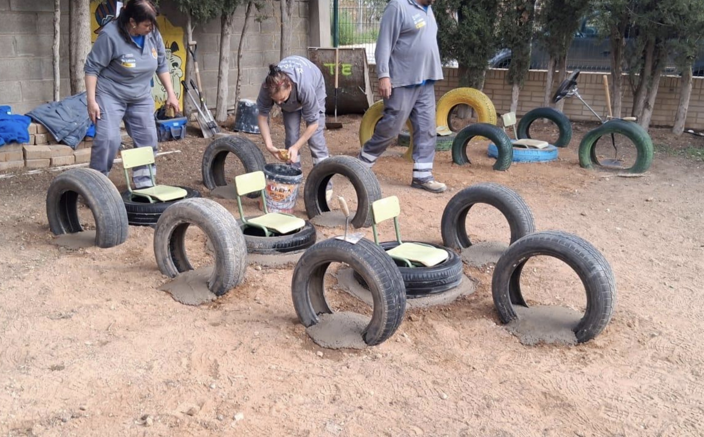 Además, se ha habilitado una zona de recreo y juego con la creación de unos originales vehículos simulados a través de la instalación de neumáticos reciclados y sillas del propio centro educativo. Una iniciativa que agradecieron especialmente los niños y niñas de 1º a 6 º de Primaria que ya pueden disfrutar de este original patio escolar.