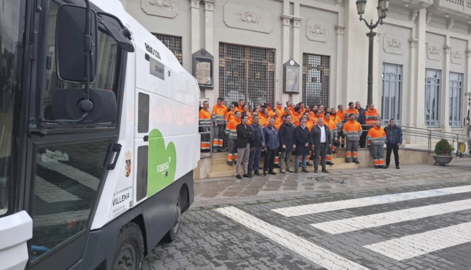 El Ayuntamiento de Villena ha presentado hoy públicamente la nueva dotación de personal y la maquinaria provisional de la nueva contrata del servicio de recogida de residuos domésticos y de limpieza viaria, que sustituye al modelo municipalizado que operaba hasta el pasado 31 de enero. Un contrato que supone más plantilla y nueva dotación de maquinaria y vehículos que se irán incorporando en las próximas semanas.