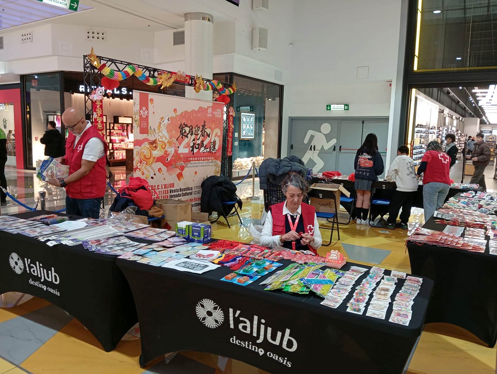 Durante once días, del 2 al 11 de febrero (excepto domingo), se podrá disfrutar de la Estación Cultural, en horario de 17.00 a 20.00 horas. Un espacio que alberga una exposición cultural, un mercadillo solidario con venta benéfica y un stand de artesanía tradicional china, como recortes de papel, horquillas tradicionales, abanicos lacados, llaveros y cuadernos decorativos. Por cada compra mínima de tres euros, los visitantes recibirán un cupón para participar en el sorteo de entradas para el espectáculo oficial del Año Nuevo Chino, que se celebrará el 21 de febrero de 2026 en el Centro de Congresos Ciutat d’Elx. La recaudación irá destinada íntegramente a Cruz Roja, reforzando el compromiso del centro comercial con las causas sociales.