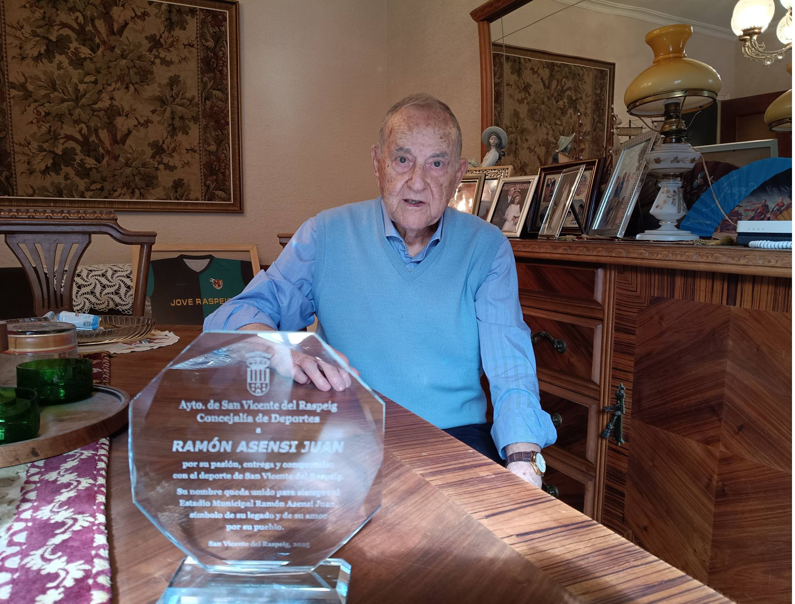 Durante toda su vida profesional Ramón Asensi Juan trabajó en la Fábrica de Cemento. También llegó a ser concejal en los primeros años de la Transición. Sin embargo, es su vinculación al fútbol local de base aquello que más le ha unido para siempre a la sociedad sanvicentera. Hasta el punto de que varios de sus antiguos discípulos propusieron (con éxito) al pleno municipal que el estadio donde juega el Español de San Vicente lleve su nombre desde esta temporada.