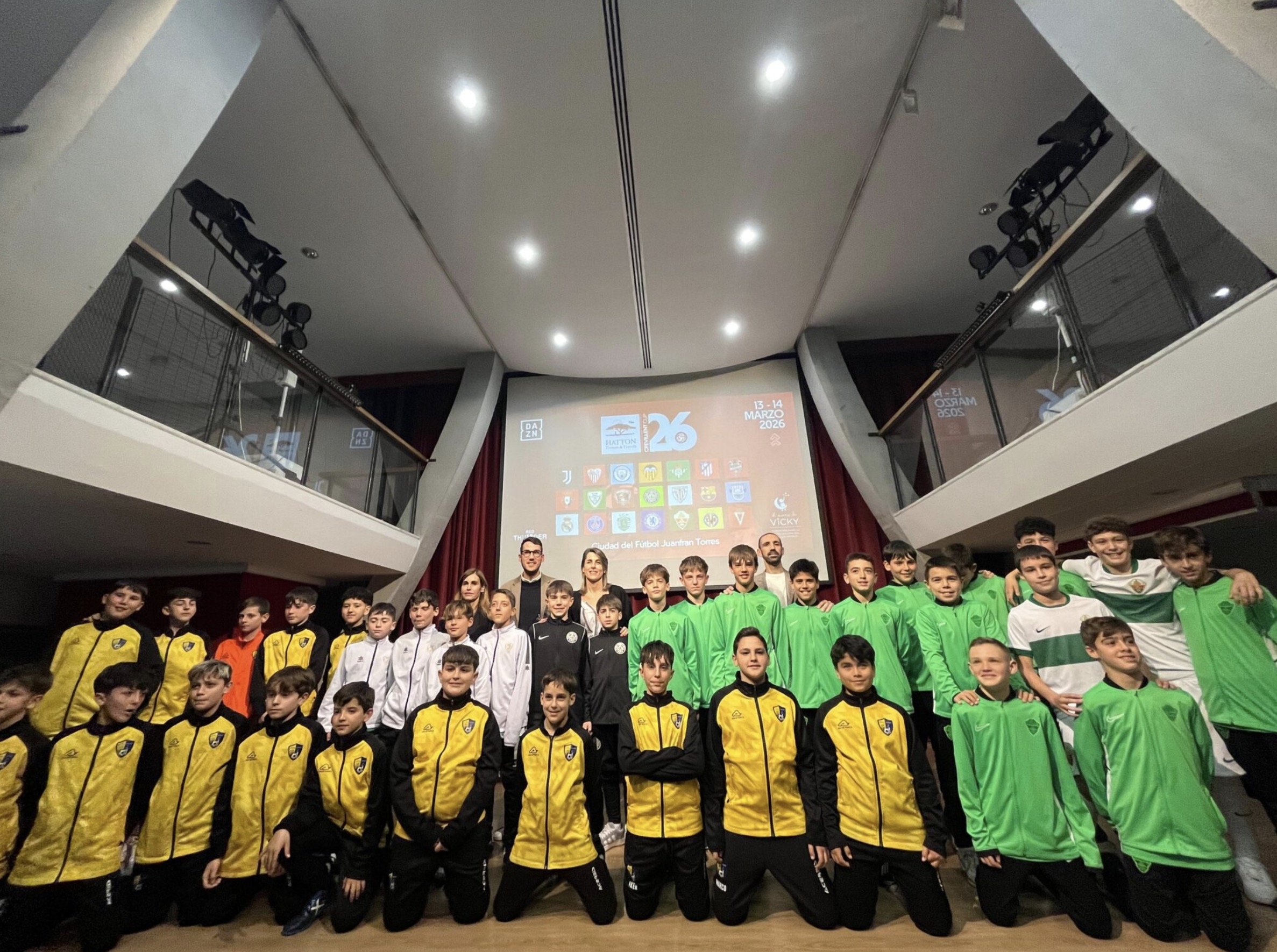 La Ciudad del Fútbol “Juanfran Torres” acogerá los próximos 13 y 14 de marzo la quinta edición del torneo nacional e internacional de fútbol base “Hatton Crevillent Cup”, una cita que se consolida como uno de los grandes referentes del fútbol formativo en España. La presentación ante la sociedad crevillentina tuvo lugar en la tarde de ayer lunes el Salón de Actos de la Casa de Cultura “José Candela Lledó”, con la presencia de la alcaldesa Lourdes Aznar Miralles; el concejal de Deportes, David Amorós Candela; el fundador de Red Thunder Sports y promotor del torneo, Juanfran Torres Belén; y la presidenta de la Fundación “El sueño de Vicky”, Laura García Marcos, además de representantes de empresas colaboradoras.