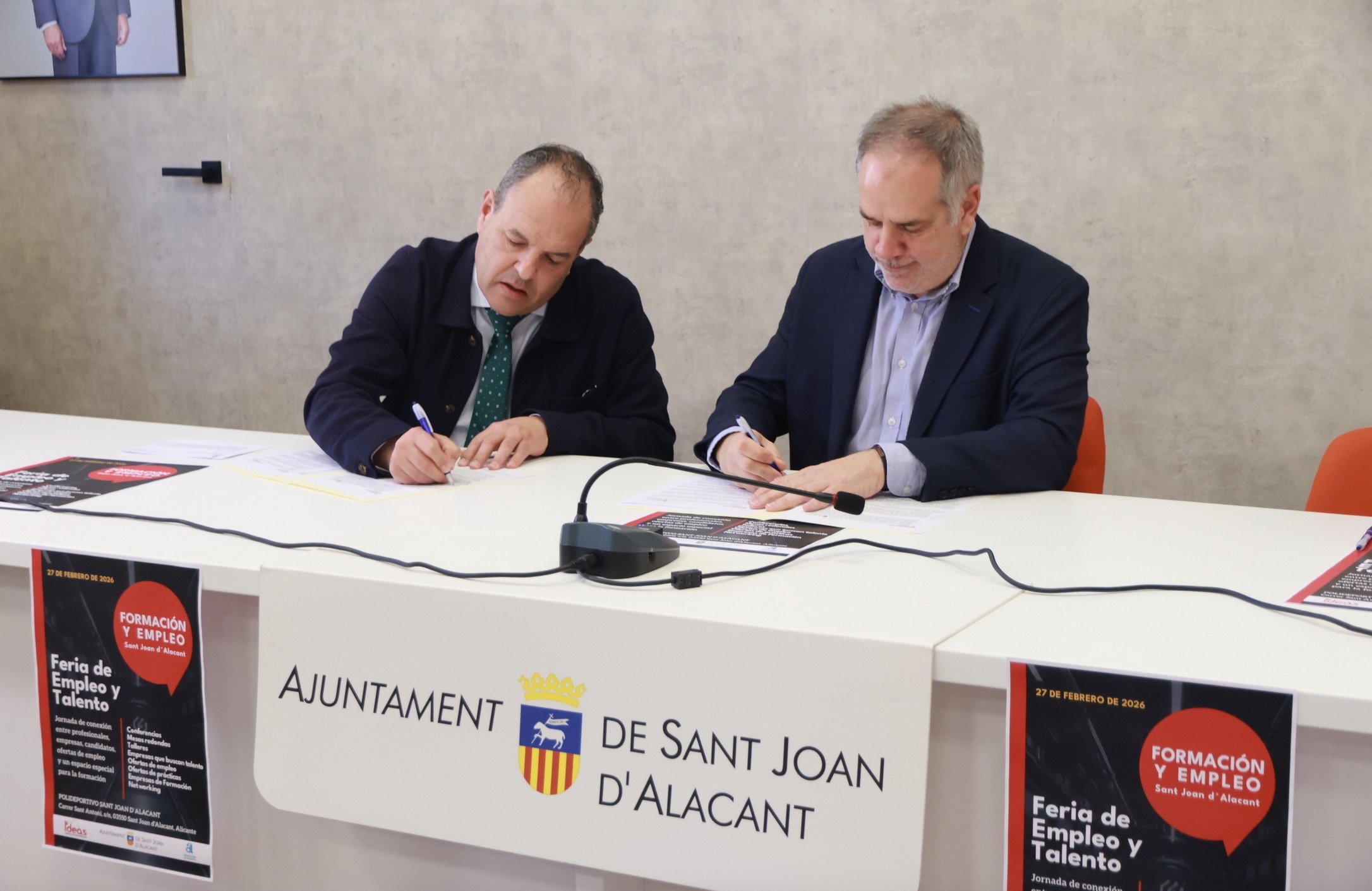 El alcalde de Sant Joan d’Alacant, Santiago Román y el presidente de la Cámara de Comercio de Alicante, Carlos Baño, han presentado hoy las acciones formativas que se van a impulsar en próximas fechas a raíz del convenio firmado entre ambas instituciones para la colaboración mutua en la realización de los programas Talento Joven y Talento +45 en el municipio de Sant Joan d’Alacant. Al acto también ha asistido la concejala de Desarrollo Económico y Empleo, Charo Tomás.