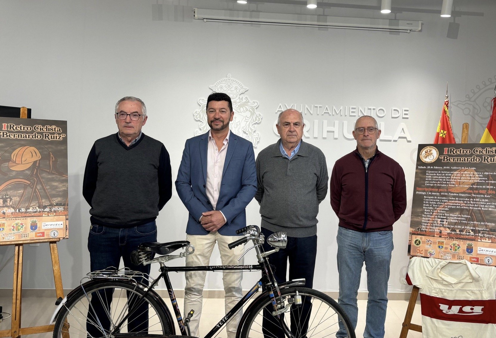 Orihuela acogerá el próximo fin de semana, los días 28 de febrero y 1 de marzo, la ‘I Retro Ciclista Bernardo Ruiz’, una iniciativa que nace como homenaje a la figura del histórico ciclista oriolano y que busca mantener vivo el legado de ‘El Pipa’, uno de los grandes referentes del deporte español. A la presentación han asistido el concejal de Deportes, Víctor Sigüenza, acompañado de Bernardo Ruiz, hijo del ciclista oriolano, junto a los miembros de la organización Rafa Barrios, Luis Galiano, José Antonio Gómiz, Francisco Manuel Cacho y José Manuel Torres.