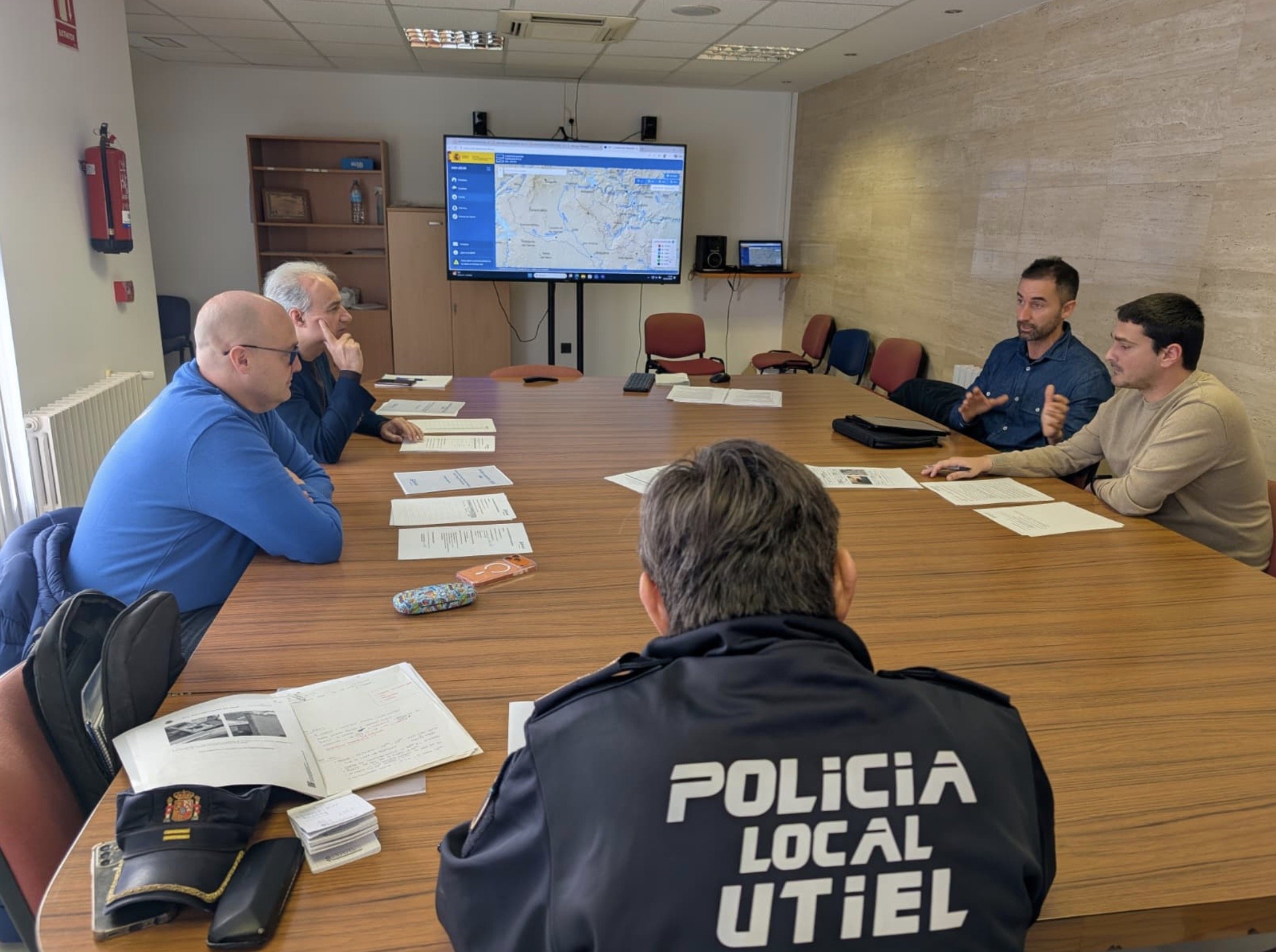 El pasado viernes, el alcalde de Utiel, Ricardo Gabaldón, el concejal de seguridad ciudadana y emergencias, Juan Ortolá, el inspector jefe de la Policía Local, Juan Miguel Junquero y técnicos municipales se reunían con el coordinador de la empresa elaboradora de planes municipales (PLANISOL) para poner en práctica un simulacro operativo en situaciones de riesgo de inundaciones.