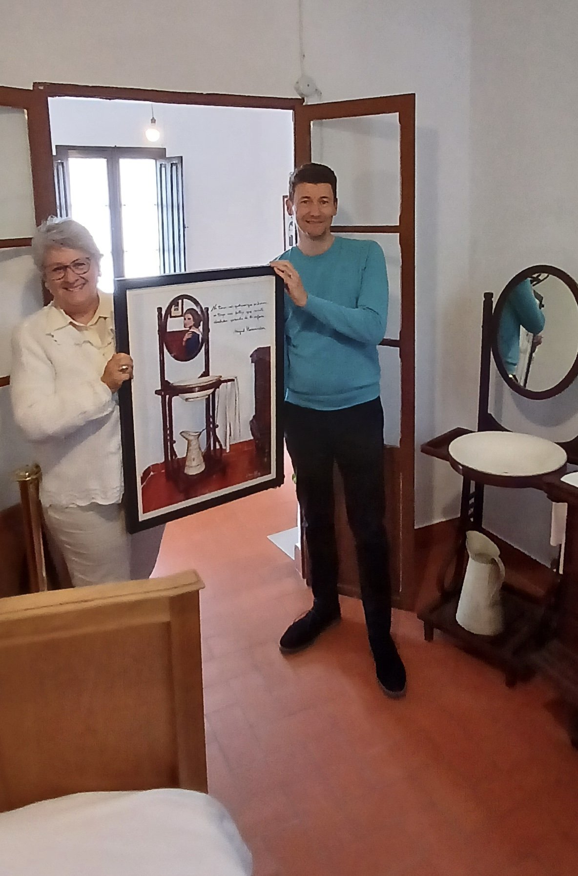 Afincada en Alicante desde hace medio siglo, no olvida Orihuela; “me siento muy arraigada y orgullosa de haber nacido en el pueblo de Miguel Hernández”, expresa, antes de remarcar nuestra relevante historia, “evidente en el patrimonio histórico”. Muestra de su cariño hacia Orihuela acaba de donar un cuadro que representa un zafero del poeta.