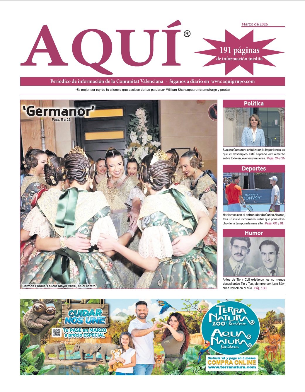- Páginas especiales dedicadas a las Fallas de Valencia. Desde una entrevista a la Fallera Mayor de la capital, como a otras personas representativas; sin olvidar de un repaso a su historia o de qué no nos tenemos que perder en estos días.