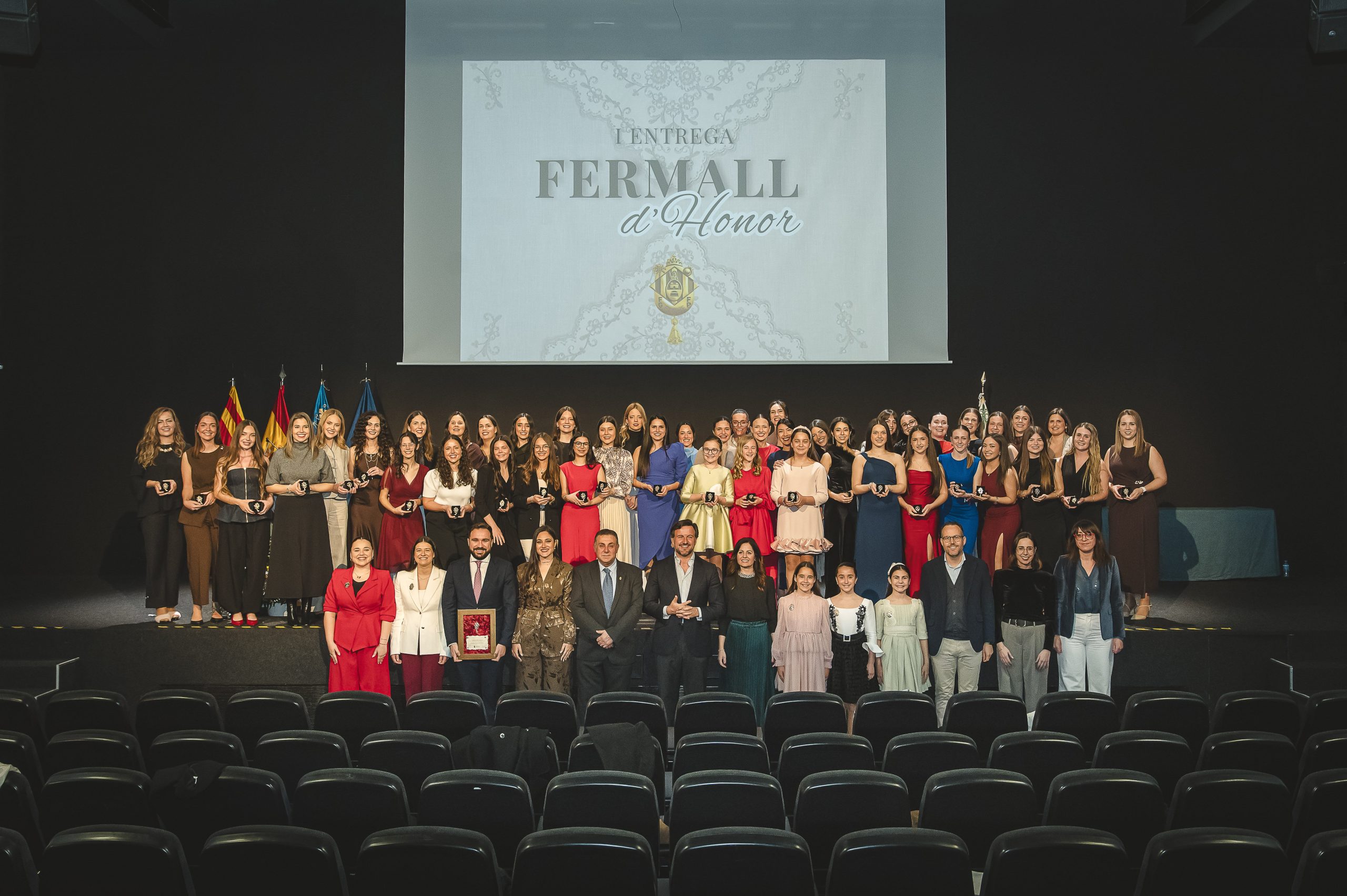 Durante la ceremonia se hizo entrega de este distintivo a los reinados comprendidos entre 2013 y 2024. El Fermall d’Honor es una insignia que las homenajeadas podrán lucir en los actos a los que sean invitadas por la Federación, convirtiéndose así en un símbolo permanente de reconocimiento a su papel dentro de las fiestas de la ciudad.