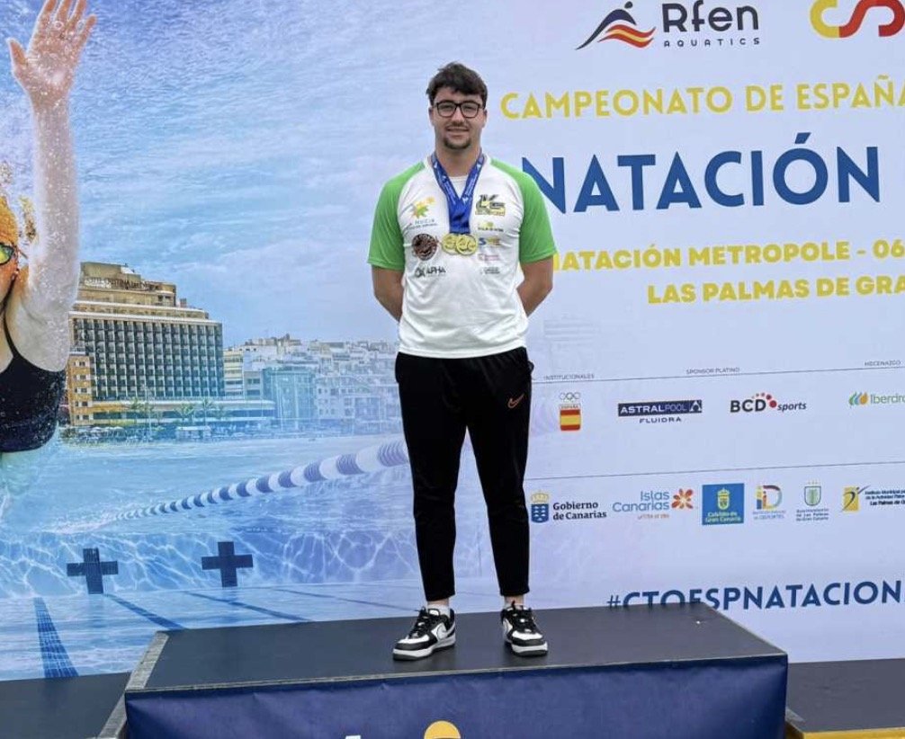 El nadador nuciero Miguel Bou Bernabéu (22 años) se alzó con dos oros el IX Campeonato de España Open de Fondo de Natación Masters en Las Palmas de Gran Canaria, el pasado fin de semana. El nadador nuciero fue campeón nacional en las distancias de 3.000 m. y 1.500 m. en categoría másters +20, logrando sendos récords autonómicos.