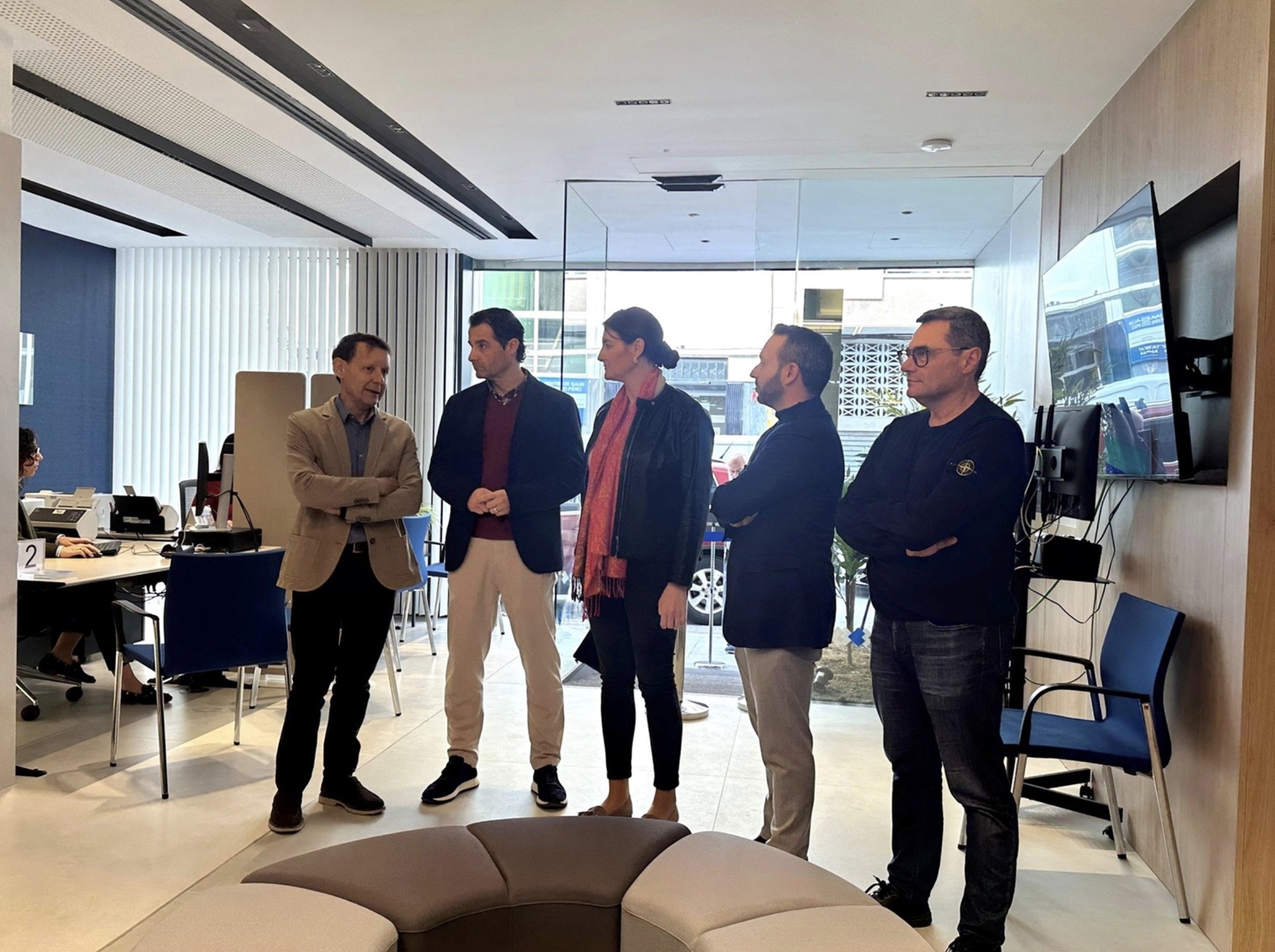 La vicepresidenta segunda y diputada de Hacienda, Marina Sáez, el director del organismo, José Antonio Belso, y el alcalde del municipio, Eduardo Dolón, han recorrido las nuevas dependencias de la calle Patricio Pérez, ya abiertas al público tras una reforma en la que se han invertido 455.000 euros. Esta es la tercera oficina que renueva Suma dentro de su Plan Estratégico, tras la apertura de Elche-Carrús y Benidorm, mientras que a lo largo de 2026 también está prevista la reforma de las sedes de Orihuela, Almoradí y Alfaz del Pi.